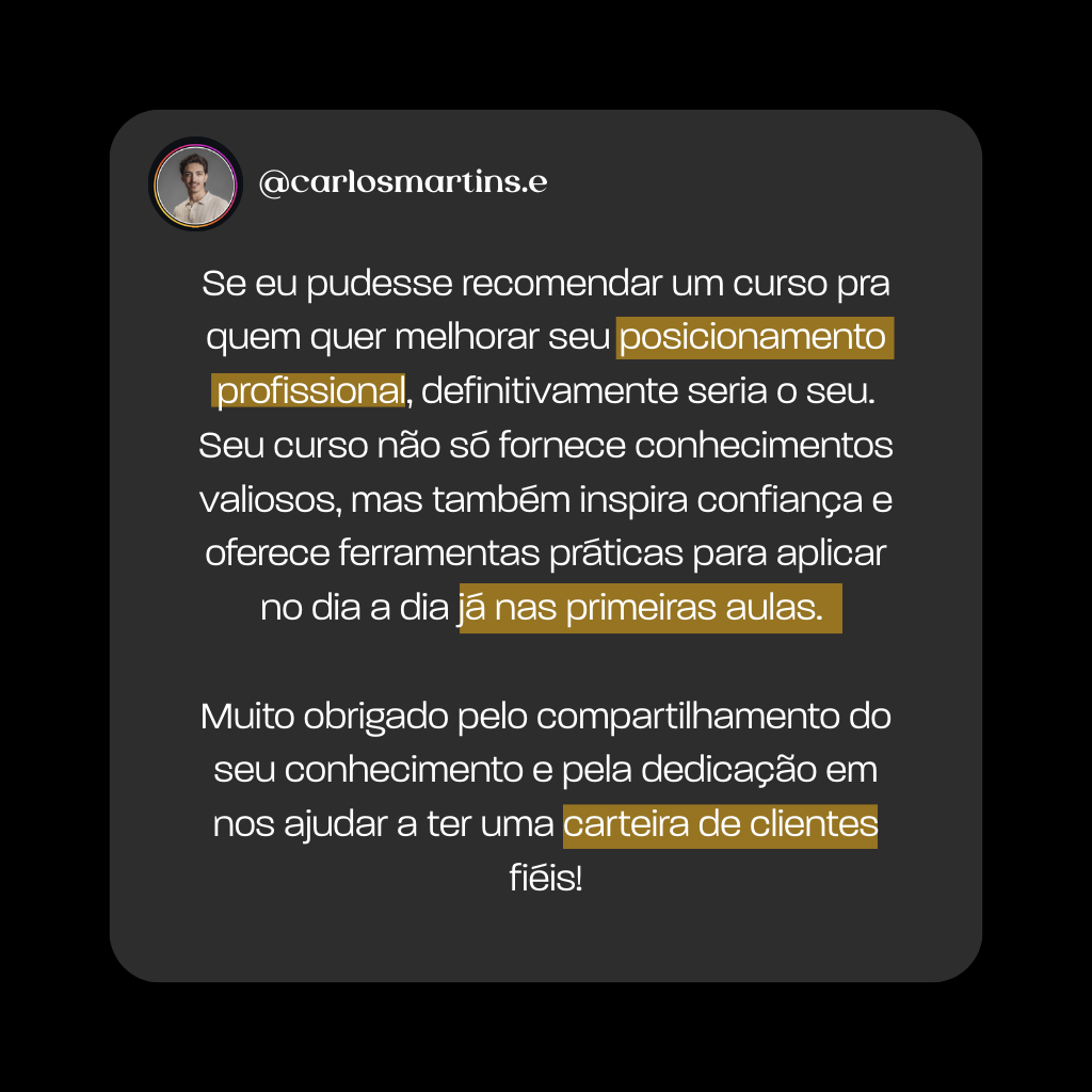 Você vai aprender a se posicionar no Instagram para atrair clientes e se tornar um profissional disputado!